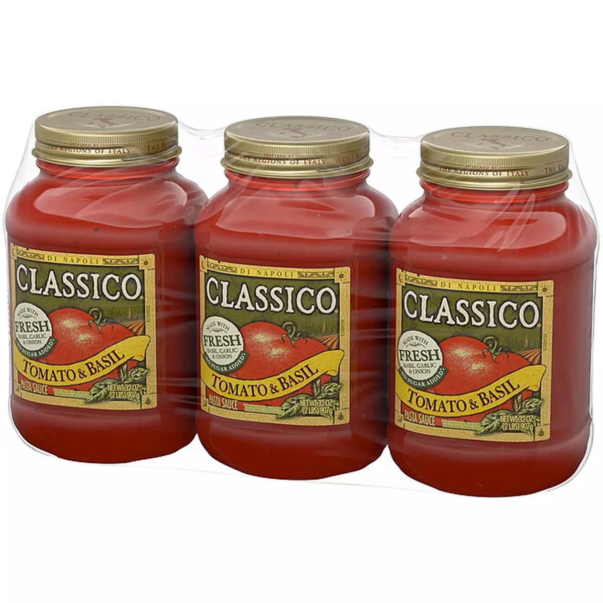 • Three 32 oz. jars of Classico Tomato and Basil Pasta Sauce