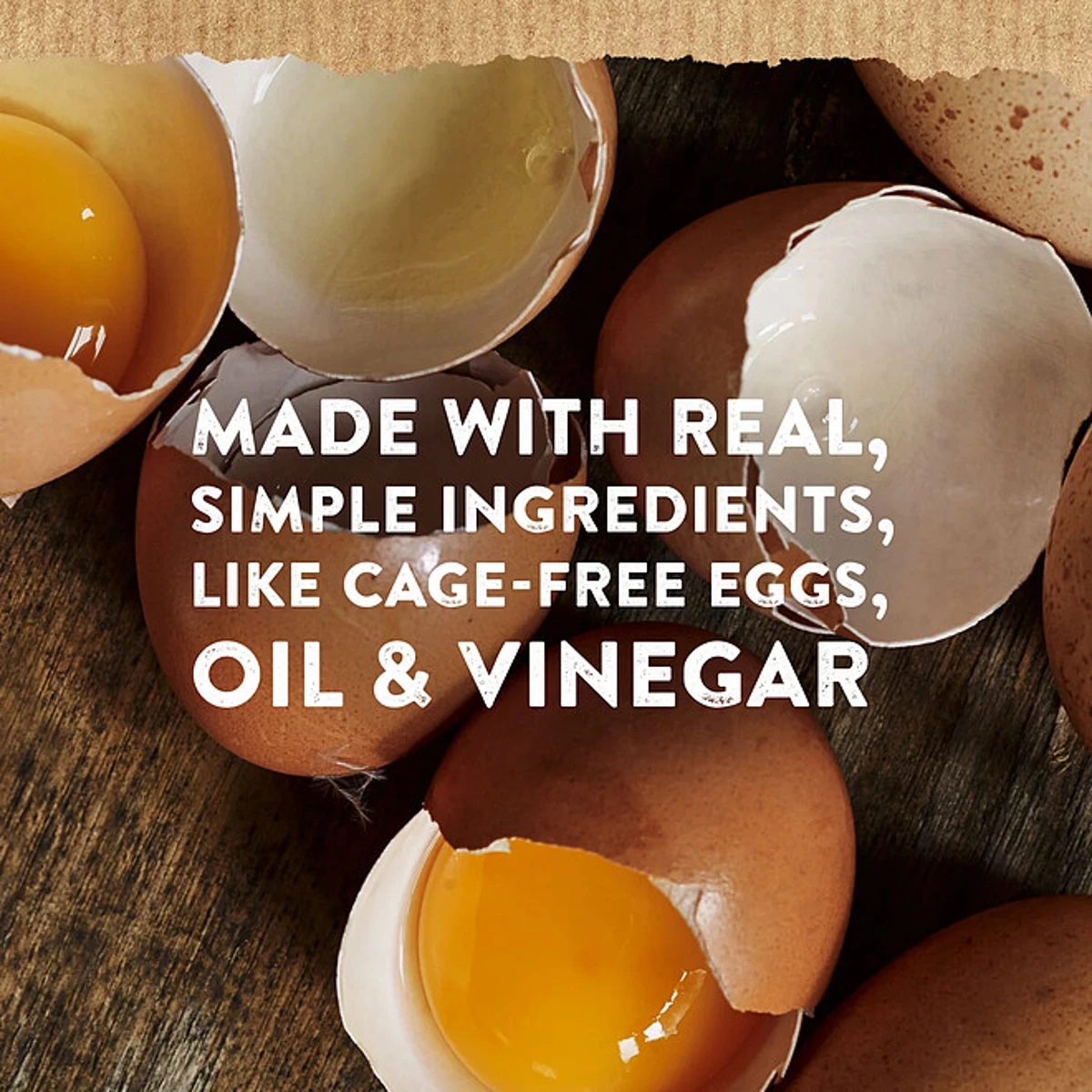Ingredients: soybean oil, water, whole eggs and egg yolks, distilled vinegar, salt, sugar, lemon juice concentrate, calcium disodium EDTA (used to protect quality), natural flavors.