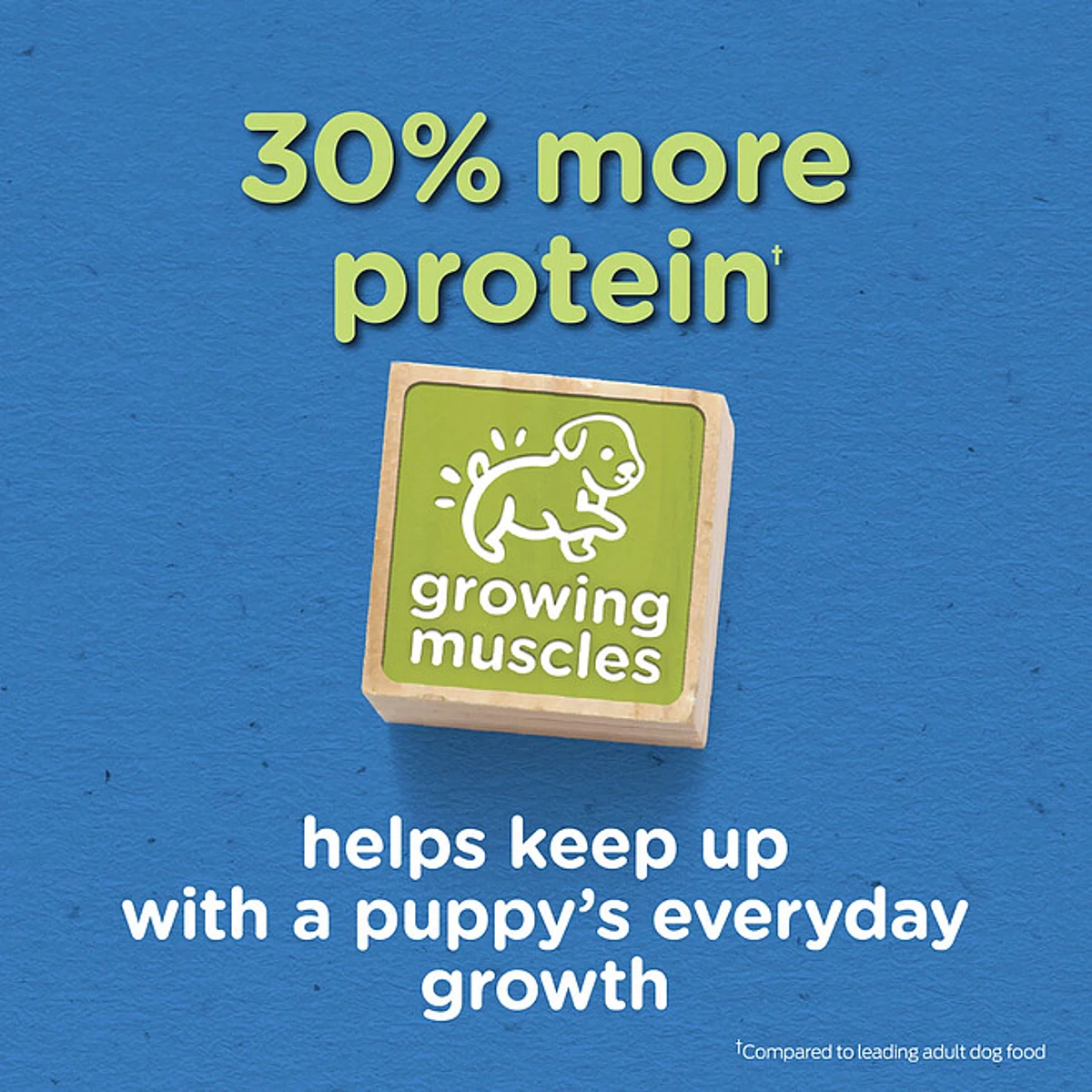 Give your growing puppy a protein-packed meal every day with Purina Puppy Chow Tender & Crunchy Dry Dog Food. This dry dog food provides a 100% essential first year of nutrition for a growing puppy. Give your puppy the proper building blocks of nutrition to lay the foundation for an active life. Puppy Chow is America’s #1 puppy food brand thanks to its years of success feeding healthy puppies and dogs.